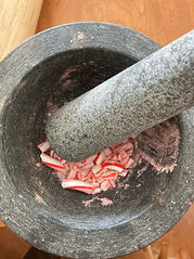 the mortar and pestle were a childhood dream of mine for years. when I finally got them, they somehow became a connection point for people in the house as well as visitors. one of their first uses was to make guacamole for a roommate dinner. we all took turns mixing the guac, so a little bit of all of our love went into it, and it was delicious.